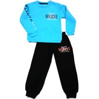 Костюм для мальчика. Джемпер с круглой горловиной, рукава с манжетами. Брючки с карманами, эластичной резинкой в поясе и манжетами. Костюм украшен надписью "BELIEVE"Рост 122 см, длина толстовки- 47 см, обхват груди- 72 см, длина рукава- 43 см, длина брюк- 67 см, обхват талии- 52 см.