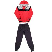 Спортивный костюм для мальчика из хлопкового трикотажа футер.Мастерка прямого кроя. Полочка из комбинированного трикотажа, украшена нашивкой-надписью "Originals". Капюшон на подкладе из х/б трикотажа контрастного цвета, для утяжки вставлен шнурок с наконечниками. На передней половинке мастерки расположены карманы с листочкой. Низ изделия и рукавов на трикотажном манжете с полосками контрастных цветов.