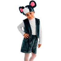 Костюм для мальчика плюшевый, состоящий из 3 предметов: жилетка, шорты и маска-шапочка.Жилетка и шорты имеют свободный крой. Шорты в поясе на внутренней резинке. В проймах подвернуты и прошиты. Сзади пришит хвостик. Маска-шапочка в виде объёмной мордочки с ушками. Внутри шапочка на марлевом подкладе. Для дополнительной фиксации сзади пришита резинка.