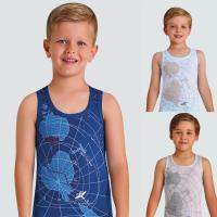 Майка для мальчика из эластичного х/ трикотажа с принтом "карта". Вырез, лямки и проймы отделаны трикотажным кантом.Размер 0 (86-92), длина- 36 см, обхват груди- 47 см.