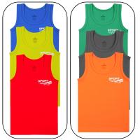 Майка для мальчика на широких бретелях. Модель приталенного покроя, выполнена из эластичного х/б трикотажа кулирное полотно. Декорирована надписью на английском языке "Sport". Горловина и проймы отделаны эластичным, трикотажным кантом в тон полотна. Низ изделия обработан швом вподгибку двойной строчкой.Размер 1 (98-104), длина- 39 см, обхват груди- 50 см.
