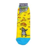 Носки детские, из эластичного трикотажа с тканным принтом "мышонок и сыр". Средний паголёнок на эластичной резинке. Мысик, пятка и резинка ярко голубого цвета.