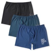 Трусики-боксеры для мальчиков, выполнены из эластичного хлопкового трикотажа кулирное полотно. Срез пояса обработан подгибом с эластичной тесьмой, срезы ног подшиты. На передней половинке трусов выполнен принт с надписями на английском языке. В поясе на закрытой резинке.ВНИМАНИЕ! Товар продается по 3 шт. одного размера. Расцветка может прийти любая, из представленных на фото (цвета могут дублироваться).