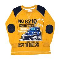 Джемпер из трикотажа с эффектом велюра. Горловина, рукав-реглан на манжете. На плечах вставки из темно синей стеганной ткани. На локтях декоративные заплатки. На полочке надписи и вышивка-аппликация.Размер 116 длина 35 см, обхват груди 58 см, длина рукава по внутреннему шву 31 см.