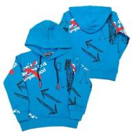 Джемпер с яркими рисунками и надписями-трансферами. Рукав, низ джемпера на манжете. Капюшон со шнурком. Два боковых прорезных кармана отделаны темным кантом.Размер 110: длина 42 см, обхват груди 72 см, длина рукава 41 см.