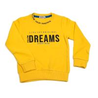 Джемпер для мальчика, утепленный, из трикотажа с эффектом велюра. На полочке прорезиненные надписи. Горловина, рукав, низ джемпера на трикотажных манжетах, на горловине - с надписью.Размер 110: длина- 42 см, обхват груди- 60 см, длина рукава- 40 см.
