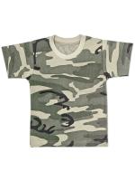 Футболка камуфлированная для мальчика. Выполнена из мягкого и легкого 100%-го хлопка - кулирное полотно. Модель прямого силуэта с втачным коротким рукавом. Декорирована принтом "камуфляж". Круглый вырез горловины с трикотажной резинкой (рибана). Низ изделия и рукавов обработан швом вподгибку двойной строчкой. У размеров 86 и 92 на плечике застежка на 2 пробивные кнопки.Размер 86: длина - 37 см, обхват груди - 53 см.