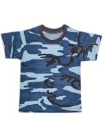 Футболка камуфлированная для мальчика. Выполнена из мягкого и легкого 100%-го хлопка - кулирное полотно. Модель прямого силуэта с втачным коротким рукавом. Декорирована принтом "камуфляж". Круглый вырез горловины с трикотажной резинкой (рибана). Низ изделия и рукавов обработан швом вподгибку двойной строчкой. У размеров 86 и 92 на плечике застежка на 2 пробивные кнопки.Размер 86: длина - 37 см, обхват груди - 53 см.
