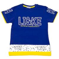 Яркая футболка для мальчика с крупной надписью на груди и вставками трикотажа с рисунком и однотонного по низу. Горловина на манжете, с внутренней отделкой трикотажным кантом на спинке. Рукав с подворотом из трикотажа другого цвета и крупными буквами.Размер 110: длина 43 см, обхват груди 64 см.