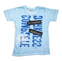 Футболка для мальчика из х/б трикотажа, с принтом "надписи". Горловина на манжете. Футболка с эффектом легкого непрокраса и потертости.Размер 140: длина 47 см, обхват груди 72 см.