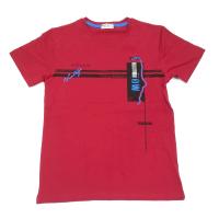 Футболка для мальчика, из эластичного, х/б трикотажа, с принтом на груди, украшенным смесовой лентой и полукольцом. Горловина на трикотажном манжете. Надпись на спинке.Размер 134: длина- 53 см, обхват груди- 74 см.