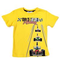Футболка для мальчика прямого силуэта, с втачным коротким рукавом. На передней половинке принт "Гоночные машины". Круглый вырез горловины с трикотажной резинкой нежно обрамляет шею. Горловина спинки внутри обработана настрочной планкой из киперной ленты контрастного цвета. Низ изделия и рукавов обработан швом вподгибку двойной строчкой.Размер 92: длина- 38 см, обхват груди- 59 см.
