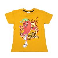 Футболка  для мальчика, из эластичного х/б трикотажа. Горловина на трикотажном манжете, с внутренней отделкой на спинке трикотажным кантом. На груди яркий принт-термотрансфер "Эдисон Перец".