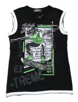 Майка для мальчиков из эластичного х/б трикотажа интерлок. Полочка декорирована принтом "Скейтбордист". Обработка горловины, низа изделия и пройм обтачкой кантом, края оформлены с эффектом "необработанный срез".Размер 110: длина 51 см, обхват груди 72 см.