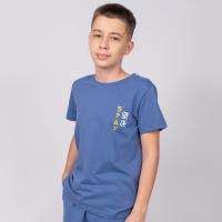 Футболка для мальчика прямого силуэта. Выполнена из хлопкового трикотажа - кулирное полотно. Передняя половинка декорирована принтом "Иероглиф". Вырез горловины круглый, форма выреза связана трикотажной эластичной резинкой. Горловина спинки внутри укреплена настрочной планкой из кулирки в тон. Рукав короткий-втачной. Низ изделия и рукавов обработан швом вподгибку двойной строчкой.