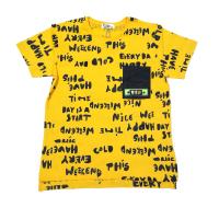 Футболка для мальчика из х/б трикотажа, с принтом "надписи". Горловина на манжете. На груди накладной карман из ткани "под кожу", украшенный декоративными элементами. Декоративный элемент на спинке, у горловины.Размер 140: длина 56 см, обхват груди 82 см.