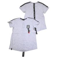 Футболка для мальчика, из х/б трикотажа, с яркой, декоративной нашивкой на груди. Горловина на трикотажном манжете. На плечах, и по центру спинки, нашита смесовая лента с надписями. Полукруглый низ. На полочке, снизу, нашивка из тесьмы с надписью.Размер 140: длина- 59 см, обхват груди- 84 см.