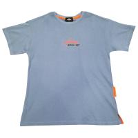 Футболка для мальчиков с коротким рукавом. Горловина обработана тонкой трикотажной манжетой. Полочка и спинка украшены прорезиненой термопечатью и фирменной нашивкой в боковом шве.Размер 146: Длина - 62 см, обхват груди- 84 см.