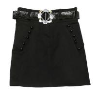 Юбка для девочки, прямого кроя, из костюмной ткани на подкладе (капрон). Пояс со шлевками под ремень. На переднем полотнище есть декоративные планки с пуговичками, Застежка-гульфик по центральному шву. По заднему шву есть шлица. Ремень лаковый с большой пряжкой из пластмассы.Размер 110: длина 34 см, обхват талии 56 см.
