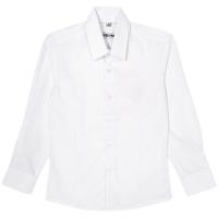 Рубашка белая для мальчика. Классический, небольшой воротник на стойке. Застежка на пуговицы. Спинка на кокетке. Рукав на манжете с застежкой на пуговицу.Размер 30 (122-128): длина 53 см, обхват груди 76 см, длина рукава 45 см.