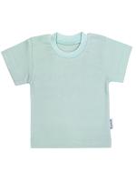 Футболка детская однотонная из х/б трикотажа интерлок. Выполнена из мягкого и легкого 100%-го хлопка. Модель прямого силуэта с втачным коротким рукавом. Горловина круглая, обработана воротником из рибаны. На плечике застежка на 2 пробивные кнопки. Низ изделия и рукавов обработан швом вподгибку двойной строчкой.Размер 68: длина - 31 см, обхват груди - 46 см.
