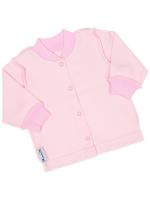 Кофточка свободного кроя из интерлока. Длинный втачной рукав. Горловина и рукав на трикотажных манжетах из рибаны. Застежка кнопки по центру, по всей длине. Низ изделия обработан швом вподгибку двойной строчкой. Наружные швы (в размерах 74, 80 швы вовнутрь).