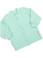 Кофточка свободного кроя из интерлока. Длинный втачной рукав. Горловина и рукав на трикотажных манжетах из рибаны в тон. Застежка кнопки по центру, по всей длине. Низ изделия обработан швом вподгибку двойной строчкой. Наружные швы.Размер 56: длина - 27 см, обхват груди - 46 см, длина рукава - 17 см.