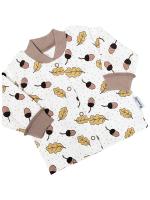 Кофточка свободного кроя из интерлока. Украшена принтом "Желуди". Длинный втачной рукав. Горловина и рукав на трикотажных манжетах из рибаны в тон. Застежка кнопки по центру, по всей длине. Низ изделия обработан швом вподгибку двойной строчкой. Наружные швы.Размер 56: длина - 27 см, обхват груди - 44 см, длина рукава - 17 см.