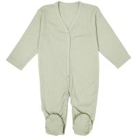 Комбинезон свободного кроя для новорожденных малышей. Модель с закрытыми носочками. Выполнен из мягкого фактурного трикотажного полотна (интерлок). Горловина, планка обработаны трикотажным кантом из основного полотна. Длинный втачной рукав, низ рукавов подвернут и прострочен двойной строчкой. Застёжка комбинезона выполнена в виде удобных кнопок по центру, по всей длине туловища, и по штанишкам. Штанишки с ластовицей. С лицевой стороны в боковом шве вшивной элемент.Размер 74: длина - 56 см, обхват груди - 57 см, длина рукава - 25 см.