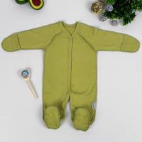 Комбинезон однотонный свободного кроя для новорожденных малышей. Модель с закрытыми носочками, швами наружу. Выполнен из мягкого и легкого трикотажного полотна – интерлок. Горловина, планка обработаны трикотажным кантом из эластичного полотна в тон. Длинный втачной рукав, низ рукавов подвернут и прострочен двойной строчкой. Застёжка комбинезона выполнена в виде удобных кнопок по центру, по всей длине туловища, и по штанишкам. Штанишки с ластовицей. С лицевой стороны в боковом шве вшивной элемент. У размера 56 рукав-реглан и низ рукавов закрыт варежками - антицарапками. У размеров 74, 80 швы вовнутрь.Размер 56: длина - 45 см, обхват груди - 50 см, длина рукава от горловины (с учетом рукавички) - 27 см.