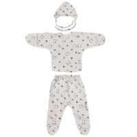 Утепленный комплект для новорожденных малышей свободного кроя, состоящий из распашонки, ползунков и чепчика. Выполнен из хлопкового трикотажа футер, где внутренняя сторона покрыта мягким начёсом. Декорирован нежным цветочным принтом "Хлопок" по всей длине. Модель со швами наружу.Распашонка с запахом свободного кроя. Рукав длинный с варежкой антицарапкой. Застежка кнопки снаружи с левой стороны, изнутри с правой стороны.