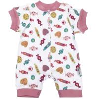 Песочник из х/б трикотажа с красочным принтом"Конфетки". Горловина, рукав, штанишки на манжете. Застежка кнопки по центру, по всей длине.Размер 62: длина 39 см, обхват груди 50 см.