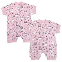 Песочник для девочек из эластичного х/б трикотажа (интерлок). Украшен красочными рисунками "Кошечка-принцесса". Горловина, низ изделия и рукавов на трикотажных манжетах из рибаны. Застежка кнопки по центру, по всей длине и по штанишкам. Короткий рукав. Наружные швы у размеров 62,68.Размер 62: длина 40 см, обхват груди 50 см.