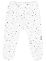 Ползунки свободного кроя для новорожденных. Выполнены из хлопкового трикотажа - кулирное полотно. Декорированы нежным принтом "Звездочки". В поясе на закрытой резинке. В боковом шве вшивной элемент. Наружные швы.Размер 56: длина - 43 см, обхват талии - 40-48 см.
