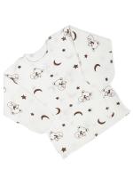 Распашонка для новорожденных, с запахом, свободного кроя. Выполнена из хлопкового трикотажа - интерлок. Модель декорирована принтом "Спящие коалы". Рукав с варежкой антицарапкой. Застежка кнопки снаружи с левой стороны, изнутри с правой стороны. Наружные швы.Размер 50: длина - 23 см, обхват груди - 38 см, длина рукава по внутреннему шву (от горловины с учетом рукавички) - 21 см.