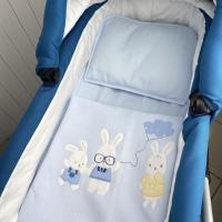 Комплект в коляску, состоящий из мягкого матрасика, одеяла и подушечки. Наполнитель матрасика и подушечки- синтепон.Размер матрасика- 68*39 см.