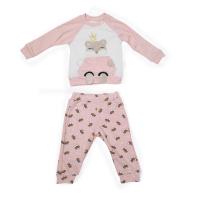 Костюм для девочки из х/б трикотажа .Джемпер с красочным принтом-аппликацией из вел-софта, велюра и парчи. Горловина, рукав, низ джемпера на трикотажных манжетах. Рукав реглан. Застежка кнопки по левому рукаву. Карман-кенгуру.