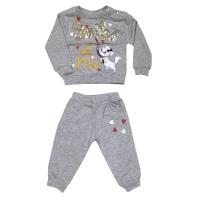 Костюм для девочки, из эластичного х/б футера.Джемпер с принтом из пайеток на груди. Горловина, рукав, низ джемпера на трикотажных манжетах. Застежка кнопки на левом плече.