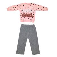 Костюм для девочки из х/б трикотажа.Джемпер из трикотажа интерлок с рисунками "звездочки", с красочным принтом-надписью из разноцветных страз. Горловина, рукав, низ джемпера на трикотажных манжетах. Застежка кнопки на правом плече.