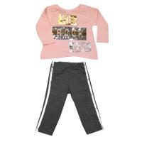 Костюм для девочки из эластичного х/б трикотажа.Джемпер с блестящими надписями и надписью из пайеток. Силуэт "трапеция". Горловина на трикотажном манжете. На плечах рельефы. Вогнутый низ джемпера.