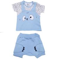 Комплект для мальчиков: футболка, шорты. Футболка с имитацией комбинезона на лямках, украшенного объемными 3D ушками и термопечатью мордочка медвежонка.Шорты без шва с ластовицей. Два боковых кармана. Шорты украшены аппликацией в виде лапок медведя.