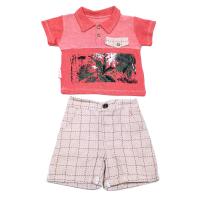 Комплект: футболка-поло с шортами для мальчиков.Футболка-поло с яркими рисунками "пальмы" на полочке. Воротник отложной, застежка планка с пуговицами. Полочка на кокетке с имитацией кармана.