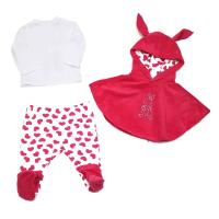 Костюм 3-ка для девочки. Пончо из флиса с капюшоном. Внутренняя часть капюшона отделана трикотажем. Капюшон украшен ушками. На переднем полотнище есть красочкая аппликация из страз "зайчик" Кофточка из хлопка, прямого кроя, застежка кнопки на спинке. Ползунки с резинкой на поясе и ластовицей. Ползунки украшены имитацией носочков из флиса.Размер 62 Пончо: длина 22 см Кофточка: длина 26 см, обхват груди 50 см, длина рукава 20 см Ползунки: длина 33 см, обхват талии 48 см
