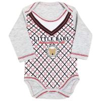 Боди из х/б трикотажа с красочным принтом "жилет". На плечиках с запахом. Застежка кнопки на плечах и снизу, между пройм.Размер 62: длина- 36 см, обхват груди- 41 см, длина рукава- 19 см.