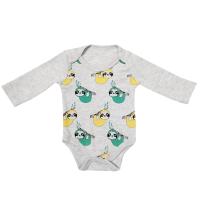 Боди с длинным втачным рукавом, выполнено из хлопкового трикотажа - интерлок. Передняя половинка декорирована очаровательным принтом "малыш ленивец на дереве". Вырез горловины круглый, обработан бейкой из основного полотна в тон. Модель на плечиках с запахом на кнопках и кнопки-застежки в паховой зоне снизу, между пройм. Внутренние швы.Размер 62 Длина- 35 см, обхват груди- 40 см, длина рукава- 19 см.