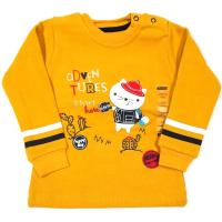 Джемпер для мальчика. Горловина, рукав на манжете. Застежка кнопки на левом плече. На полочке надписи и аппликации-вышивки. На рукавах яркие полоски.Размер 68 Джемпер: длина 29 см, обхват груди 46 см, длина рукава 27 см.