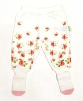 Ползунки с эластичными, трикотажными носочками, из х/б трикотажа с красочным цветочным принтом "розы". В поясе на закрытой резинке.Размер 56: длина- 34 см, обзват талии- 40 см.