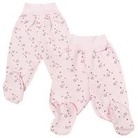 Ползунки утепленные прямого кроя из футера. Украшены принтом. В поясе на широком эластичном манжете из рибаны. Внизу ползунков пришита тонкая резиночка.Наружные швы: белый - размер 56; розовый - размер 56, 62.