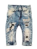 Джинсовые брюки для мальчика. 4 кармана, шлевки. Застежка на молнию и пуговку. Джинсы декорированы бахрамой и заплатками.Рост 74 см, длина- 37 см, обхват талии- 45 см.