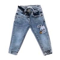 Джинсы для девочки, зауженные, с декоративными потертостями и вышивкой-принтом. На пояске шлёвки для ремешка. Застёжка пуговица на поясе. С внутренней стороны пояска вставлена резинка и пуговица для её регулирования. Два прорезных кармана с клепками спереди. Сзади два накладных кармана, украшенные фигурными строчками.Размер 74: длина- 37 см, обхват талии- 38 см.